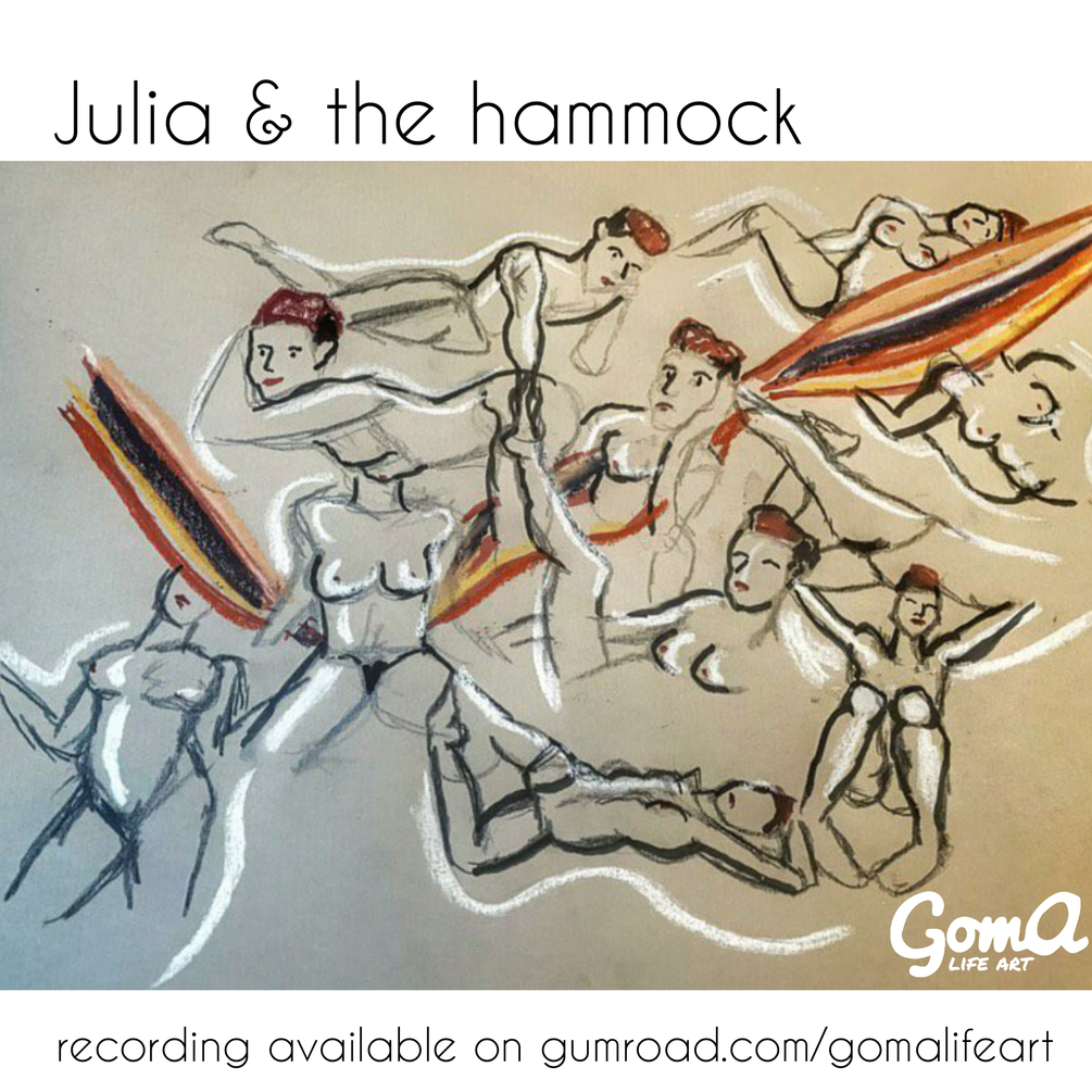 Last Sunday 11th July, I hosted a lifedrawing session at my friend's house who has a hammock in the middle of the livingroom so I used it to pose with and it was so much fun!